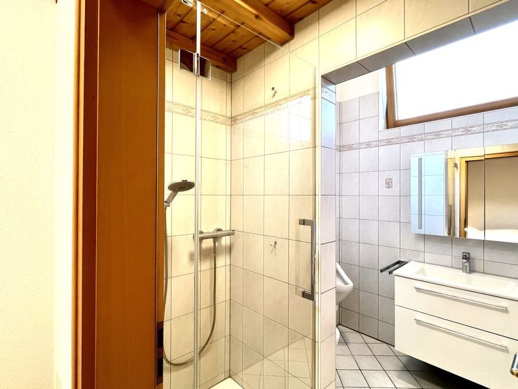 "Feingeist", appartement 2-kamers 55 m2, op verhoogde begane grond. Licht, volledig gerenoveerd in 2025, mooi en modern ingericht: hal. Woon-/slaapkamer met 1 divanbed (130 cm, lengte 200 cm), Sat-TV (Flatscreen TV). 1 2-pers. kamer met 1 2-pers bed (160 cm, lengte 200 cm), Sat-TV (Flatscreen TV). Keuken (oven, afwasmachine, 4 keramische glas kookplaten, broodrooster, waterkoker, elektrische koffiemachine) met kleine eettafel. Douche/WC. Elektrische verwarming, vloerverwarming. Solarstroom. Terrasmeubelen, zitgelegenheid. Ter beschikking: wasmachine, droger, haardroger. Internet (WiFi, gratis). Parkeerplaats bij het huis. Niet rokers woning. Privé ingang, rookmelders, brandblusser.