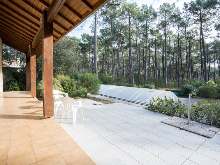 Eengezinswoning "Orée des Greens". Buiten de plaats, 3.5 km van het centrum, rustige ligging in een woonwijk, 4 km van zee, 3 km van het meer, 4 km van het strand. Voor alleengebruik: wild terrein 1.000 m2, openluchtzwembad, overdekt zwembad (4 x 8 m, 50 - 190 cm diepte, seizoensgebonden beschikbaarheid: 01.Jun. - 30.Sep.). Parkeerplaats op het terrein. Winkel 3.5 km, supermarkt 4 km, restaurant 3.5 km, fietsverhuur 3.5 km, bushalte "Le Huga" 1 km. Golfterrein (18 holes) 1.2 km, surfschool 4 km, tennis 2.9 km, midgetgolf 3.5 km, fietspad 1 km. Attracties in de buurt: Parcours Aventure 4 km. Bekende meren kunnen gemakkelijk worden bereikt: Lac de Lacanau 3 km. Groepen jongeren uitsluitend op aanvraag.