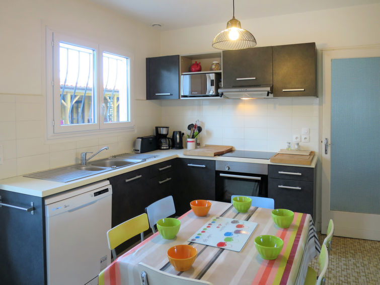 Villa "Glamys". Huurobject bestaande uit hoofd-/ bijgebouw. Voor alleengebruik: terrein 500 m2 (omheind) met gazon en bloemen, openluchtzwembad (6 x 3 m, 135 - 150 cm diepte, seizoensgebonden beschikbaarheid: 01.Mei. - 30.Sep.) met oprolbaar afdekscherm. Poolhouse, terras, overdekte parkeerplaats bij het huis op het terrein. Winkel 850 m, supermarkt 3 km, restaurant 850 m, bushalte "XIV juillet" 150 m, zandstrand "Le Grand Crohot" 12 km. Attracties in de buurt: Plage Arès sur le Bassin d'Arcachon 100 m. De omgeving is gevoelig voor geluidsoverlast. Gelieve geen lawaai te maken en de rust te bewaren.