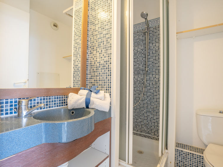 "Hameau (N1 208)", appartement 3-kamers 38 m2 op de 2e verdieping. Woonkamer met 2 divanbedden (80 cm, lengte 190 cm), TV (Flatscreen TV), air-conditioning. Uitgang naar het terras. 1 kamer met 1 2-pers bed (140 cm, lengte 190 cm). Cabine met 2 x 2 stapelbedden (80 cm, lengte 190 cm). Open keuken (mini-oven, oven, afwasmachine, 4 keramische glas kookplaten, broodrooster, waterkoker, magnetron, diepvriezer, elektrische koffiemachine). Badkamer, douche/WC. Elektrische verwarming. Terras 10 m2. Terrasmeubelen. Uitzicht op zee. Ter beschikking: kinderbed tot 2 jaar. Internet (Internet (WiFi), extra). Parkeerplaats nr. 2301 (overdekt, 1 Auto), hoogte 180 cm. Rookmelders. In plaats van een afgesloten slaapkamer bevinden sommige slaapgedeeltes zich in een open ruimte (galerij, nis, etc.). Aanbod door een particulier volgens art. 155, IV van CGI. 51322122600048