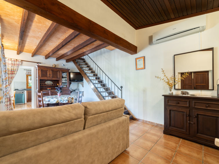 "Can Canto", huis 1-kamer 75 m2 op 2 verdiepingen. Het objekt is geschikt voor 2 volwassenen. Doelmatig en mooi ingericht: groot, open woon-/eetkamer met eettafel, Sat-TV, Digitale TV en Flatscreen TV. Uitgang naar de zitplaats in de tuin, naar het zwembad. 1 open groot 2-pers. kamer met afgeschuinde daken met 1 2-pers bed (200 cm, lengte 200 cm). Groot keuken (oven, afwasmachine, 3 inductiekookplaten, broodrooster, waterkoker, magnetron, diepvriezer). Douche/WC. Geen verwarmingsmogelijkheid. Natuurstenen vloeren. Ruime zithoek in de tuin, gazon. Terrasmeubelen, barbecue, ligstoelen (2). Uitzicht op de bergen en het landschap. Ter beschikking: wasmachine, strijkijzer, kinderstoel, kinderbed tot 2 jaar, haardroger. Internet (Internet (WiFi), gratis). Geschikt voor families. ETV216