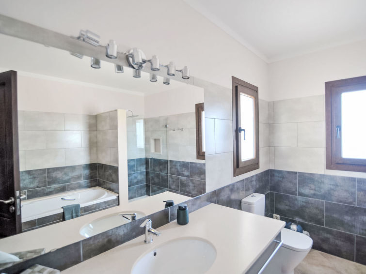 "Finca del Sol", villa 6-kamers 200 m2. Het objekt is geschikt voor 5 volwassenen + 4 kinderen. Ruim en licht, modern en romantisch ingericht: eetkamer. Uitgang naar de zitplaats in de tuin, naar het zwembad. Woonkamer met Sat-TV. Uitgang naar de tuin, naar het zwembad. 1 2-pers. kamer met 1 2-pers bed (1 x 150 cm, lengte 200 cm), air-conditioning en heteluchtverwarming. Uitgang naar de tuin. Groot keuken (oven, afwasmachine, 4 keramische glas kookplaten, broodrooster, waterkoker, magnetron, elektrische koffiemachine). Uitgang naar het terras, naar het zwembad. Badkamer, douche/WC. Air-conditioning, heteluchtverwarming. Verwarming niet in alle ruimtes. Bovenverdieping: 2 2-pers. kamers, elke kamer heeft 1 2-pers bed (1 x 150 cm, lengte 200 cm), air-conditioning en heteluchtverwarming. Uitgang naar het terras. 1 kamer met 1 bed (90 cm, lengte 200 cm). 1 2-pers. kamer met 2 bedden (90 cm, lengte 200 cm), air-conditioning en heteluchtverwarming. Bad/WC, douche/WC. Air-conditioning, vloerverwarming, heteluchtverwarming. Verwarming niet in alle ruimtes. Natuurstenen vloeren. Terrasmeubelen, balkonmeubilair, barbecue, ligstoelen (8), loggia, zitgelegenheid. Uitzicht op zee en de bergen. Ter beschikking: wasmachine, strijkijzer, kinderstoel, kinderbed tot 2 jaar (extra), haardroger. Internet (WiFi, gratis). Parkeerplaats bij het huis. VT/1963