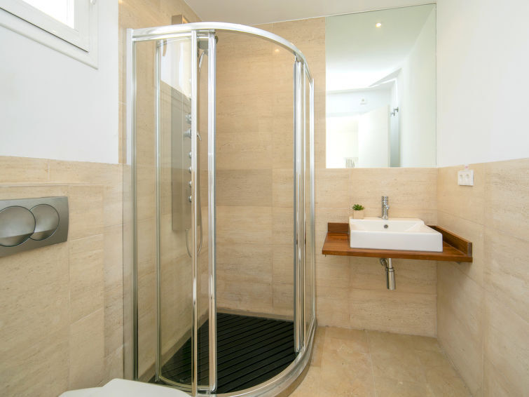 "AlteArt", huis 5-kamers 300 m2 op 3 verdiepingen. Ruim en licht, comfortabel en mooi ingericht: open woon-/eetkamer met Digitale TV, air-conditioning en heteluchtverwarming. Uitgang naar het terras, naar het zwembad. Open keuken (oven, afwasmachine, 3 keramische glas kookplaten, broodrooster, waterkoker, magnetron, elektrische koffiemachine). Douche/WC. Souterrain: 1 kamer met 1 2-pers bed (2 x 80 cm, lengte 200 cm), douche/WC, air-conditioning en heteluchtverwarming. Bovenverdieping: 1 kamer met 1 2-pers bed (1 x 160 cm, lengte 200 cm), douche/WC, air-conditioning en heteluchtverwarming. 1 kamer met 1 2-pers bed (1 x 160 cm, lengte 200 cm), bad/douche/WC, dubbele wastafels, air-conditioning en heteluchtverwarming. 1 kamer met 1 2-pers bed (1 x 140 cm, lengte 200 cm), douche/WC, air-conditioning en heteluchtverwarming. Groot terras. Terrasmeubelen, barbecue, ligstoelen, zitgelegenheid. Panoramazicht op zee en de plaats. Ter beschikking: wasmachine, strijkijzer, kinderstoel, kinderbed tot 2 jaar, haardroger. Internet (WiFi, gratis). Garage (2 Auto's). Rookvrij huis. // Reg. Nr.: ESFCNT00000305300049293800000000000000000000000000005