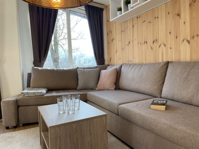 "Tiny Haus Donaublick", 3-kamers mobilhome 48 m2. Comfortabel ingericht: woon-/slaapkamer met 1 2-pers divanbed (160 cm, lengte 200 cm), zwedenkachel (alleen decoratie), Sat-TV en air-conditioning. Uitgang naar het terras. 1 kamer met 1 2-pers bed (160 cm, lengte 200 cm). 1 kamer met 2 bedden (80 cm, lengte 200 cm). Open keuken (oven, afwasmachine, 4 keramische glas kookplaten, waterkoker, elektrische koffiemachine). Douche, aparte WC. Klein terras. Terrasmeubelen. Ter beschikking: wasmachine, droger. Parkeerplaats bij het huis. Niet rokers woning.
