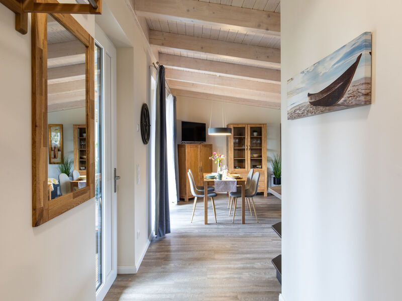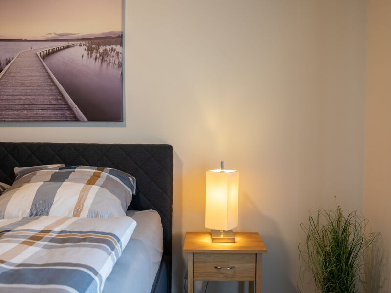 "Heimathafen", appartement 2-kamers 50 m2. Comfortabel en modern ingericht: woon-/eetkamer met Sat-TV (Flatscreen TV). Uitgang naar het terras. 1 kamer met 1 2-pers bed (180 cm, lengte 200 cm). Open keuken (oven, afwasmachine, 4 keramische glas kookplaten, broodrooster, waterkoker, elektrische koffiemachine). Douche/WC. Elektrische verwarming. Groot terras 20 m2. Terrasmeubelen. Ter beschikking: wasmachine (extra). Droger (extra). Internet (Internet (WiFi), gratis). Niet rokers woning.