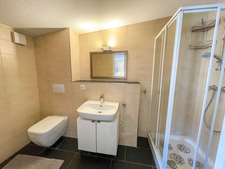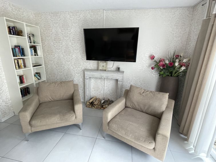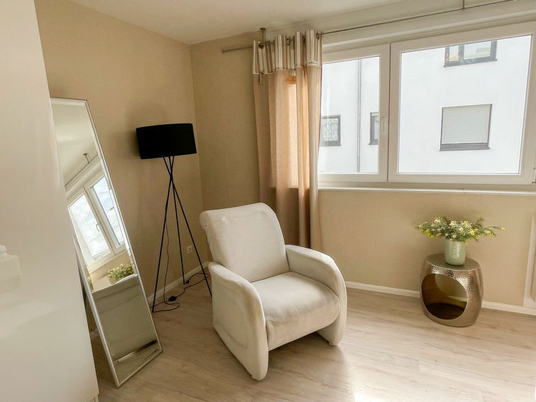 Huis in een rij 4-kamers 120 m2 op 3 verdiepingen. Ruim, modern ingericht: groot woon-/eetkamer met eettafel, bibliotheek en Sat-TV (Flatscreen TV). Uitgang naar het terras. Open keuken (oven, afwasmachine, 4 keramische glas kookplaten, broodrooster, waterkoker, magnetron, elektrische koffiemachine, pads voor de koffiemachine (Senseo Pads) extra). Aparte WC. Bovenverdieping: 1 kamer met 1 2-pers bed (160 cm, lengte 200 cm), bad/douche/WC. 1 kamer met 1 2-pers bed (160 cm, lengte 200 cm). 2e Verdieping: 1 groot kamer met 1 2-pers bed (180 cm, lengte 200 cm), douche/WC en Sat-TV (Flatscreen TV). Uitgang naar het balkon. Verwarming, vloerverwarming. Balkon, terras overdekt, gazon 12 m2. Terrasmeubelen, barbecue (verrijdbaar), ligstoelen (2). Ter beschikking: Internet (WiFi). Parkeerplaats (1 Auto). Rookvrij huis. Rookmelders, brandblusser.