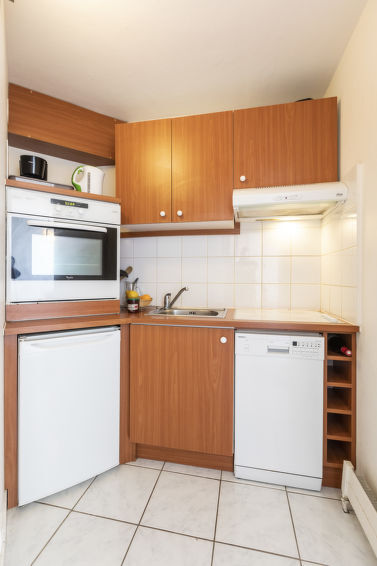 "Trois Vallées 517", appartement 1-kamer 33 m2 op de 2e verdieping, op het zuiden gelegen. Licht, mooi ingericht: woon-/eetkamer met 1 uitschuifbaar bed (2 pers. 2 x 80 cm, lengte 190 cm), TV (Flatscreen TV), elektrische kachel. Cabine met 1 x 2 stapelbedden (90 cm, lengte 190 cm). Keuken (4-pits kookplaat, oven, afwasmachine, waterkoker, elektrische koffiemachine). Badkamer, aparte WC. Balkon, op het zuiden gelegen. Zeer mooi uitzicht op de skipiste. Ter beschikking: Internet (Internet (WiFi), extra). Niet rokers woning. Rookmelders. Eigen gemeenschappelijke entree met FR7365.650.1. In plaats van een afgesloten slaapkamer bevinden sommige slaapgedeeltes zich in een open ruimte (galerij, nis, etc.). 73257006222AK