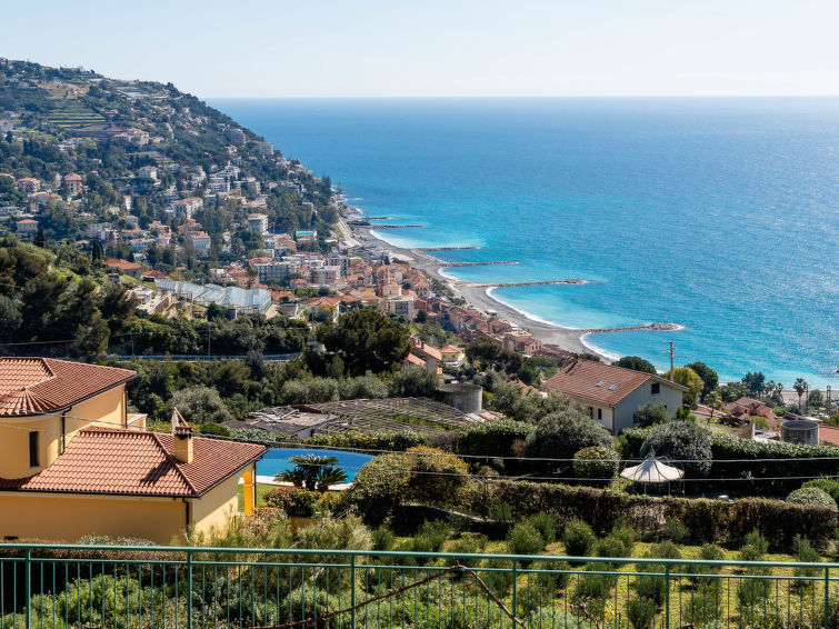 Huis met 2 woningen van 2 verdiepingen. Ospedaletti, 1.5 km van het centrum van Ospedaletti, 5 km van het centrum van Sanremo, 12 km van het centrum van Menton France, tegen een helling, 1.5 km van zee. Voor alleengebruik: openluchtzwembad (verhoogd) verwarmd (1,8 m diameter, 80 - 90 cm diepte, seizoensgebonden beschikbaarheid: 01.Jan. - 31.Dec.). Rommelige toegangsweg tot aan het huis. Levensmiddelenwinkel 1.2 km, supermarkt 1.2 km, restaurant 1.2 km, bar 500 m, bushalte 700 m, treinstation "Bordighera" 6 km, zandstrand 1.5 km. Fietspad 700 m. Auto noodzakelijk. Autobaan in de buurt.