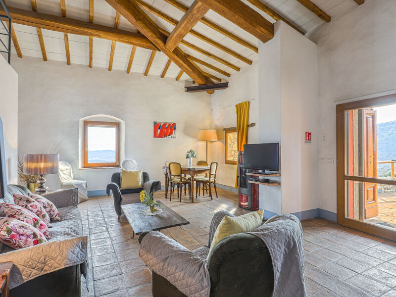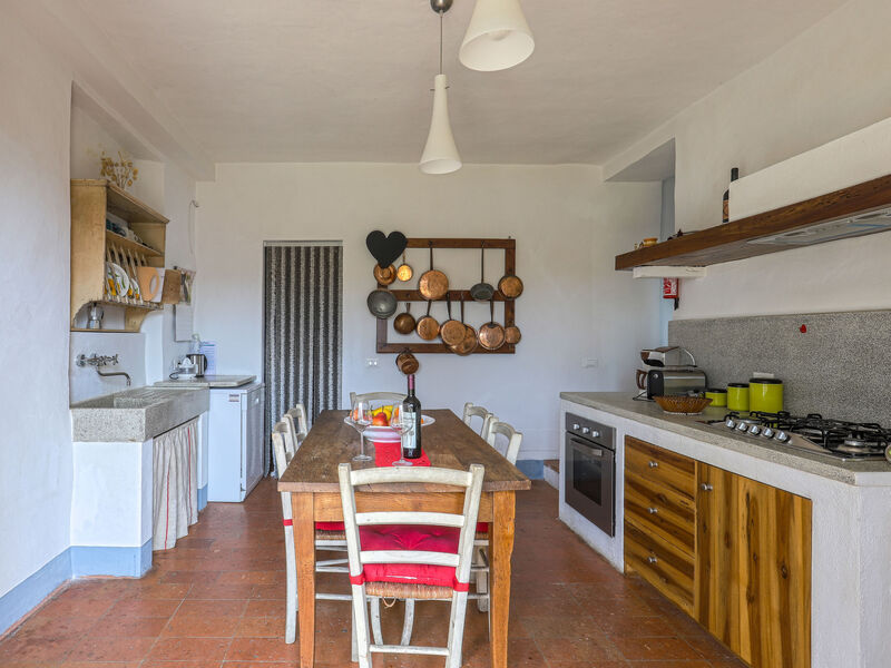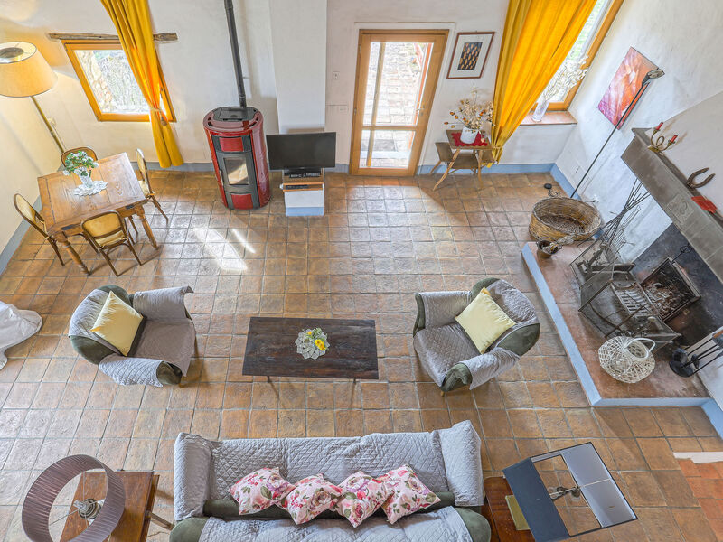 "Lunaria + Solaria + Nuvola", huis 6-kamers 235 m2 op 2 verdiepingen. Ruim en licht, volledig gerenoveerd, comfortabel en stijlvol ingericht: groot, open woon-/eetkamer met open haard, eettafel en kookhoek. Open woon-/slaapkamer met 1 divanbed, 1 2-pers bed, douche/bidet/WC, TV en internationale TV-zenders (Flatscreen TV). Bovenverdieping: Studio met 1 2-pers bed, eettafel, kookhoek, douche/bidet/WC, TV en internationale TV-zenders (Flatscreen TV). Uitgang naar de tuin. Groot woon-/eetkamer met open haard, eettafel, TV en internationale TV-zenders (Flatscreen TV). Uitgang naar de tuin. 2 2-pers. kamers. (ladder) open galerij, hoogte van het plafond 120 - 170 cm met 1 bed (80 cm). Keuken (oven, afwasmachine, Gasfornuis, 6 kookpitten (vlammen), broodrooster, waterkoker, elektrische koffiemachine) met eettafel. Uitgang naar de tuin. Douche/bidet/WC, aparte WC. Verwarming (extra). Natuurstenen vloeren. Zithoek in de tuin, tuin. Terrasmeubelen, barbecue, ligstoelen, loggia. Zeer mooi panoramazicht op het landschap. Ter beschikking: wasmachine, strijkijzer, klamboe, kinderstoel, kinderbed tot 2 jaar, haardroger. Internet (WiFi, gratis). Parkeerplaats (overdekt) bij het huis. Oplaadstation. Eén tweepersoonskamer is buiten het appartement. Niet rokers woning. Maximaal 1 huisdier/hond toegestaan. Privé ingang. Geen interne verbinding tussen de aparte wooneenheden. Geen interne verbinding tussen de etages. Het zwembad genoemd in de beschrijving is voor privé gebruik. In plaats van een afgesloten slaapkamer bevinden sommige slaapgedeeltes zich in een open ruimte (galerij, nis, etc.). IT051005B5TMGP7XWX