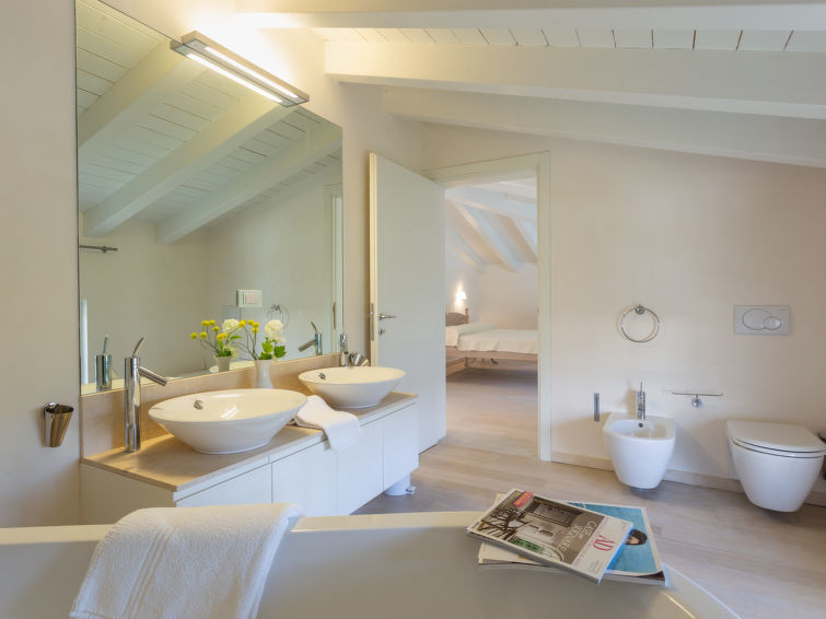 Huis 6-kamers 200 m2 op 2 verdiepingen. Volledig gerenoveerd, modern en stijlvol ingericht: groot woonkamer 30 m2 met schuifdeur, venster naar het binnenplaats met TV, CD-speler, stereo-installatie en air-conditioning. Uitgang naar de tuin, naar de zitplaats in de tuin. 1 2-pers. kamer met douche/bidet/WC en air-conditioning. Uitgang naar de tuin. 1 2-pers. kamer met air-conditioning. Uitgang naar de tuin. Groot keuken 20 m2 (5-pits kookplaat, oven, afwasmachine, elektrische koffiemachine) met eettafel. Uitgang naar de tuin, naar de loggia. Douche/bidet/WC. Gas-verwarming. Bovenverdieping: 1 2-pers. kamer met afgeschuinde daken met hoogte van het plafond 180 - 300 cm, dakraam met douche/bidet/WC, dubbele wastafels en air-conditioning. 1 2-pers. kamer met afgeschuinde daken, hoogte van het plafond 180 - 250 cm met bad/bidet/WC, dubbele wastafels en air-conditioning. Open galerij. Natuurstenen vloeren. Zithoek in de tuin, tuin 100 m2. Balkonmeubilair, ligstoelen. Ter beschikking: wasmachine. Internet (Internet (WiFi), gratis). Parkeerplaats (omheind, 4 Auto's). Geschikt voor families. Op de begane grond bevindt zich een grote woonkamer vol licht met een comfortabele zithoek, 2 tweepersoons slaapkamers met eigen badkamers en een moderne keuken met een grote eettafel en openslaande deuren naar de achtertuin. De eerste verdieping heeft een open galerij en 2 tweepersoons slaapkamers met een eigen badkamer, dubbele douches en een bad. Het huis is volledig voorzien van airconditioning. IT046013C2GKIUG68K