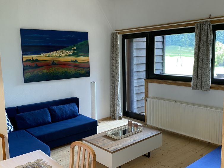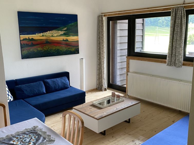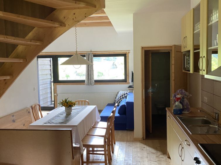 "Hasenstall / Top 8", appartement 5-kamers 79 m2 op 2 verdiepingen op de 2e verdieping. Het objekt is geschikt voor 8 volwassenen + 1 kinderen. Gedeeltelijk afgeschuinde daken, volledig gerenoveerd in 2023, zeer smaakvol en met veel hout ingericht: hal. Groot, open woon-/eetkamer. 1 2-pers. kamer met 1 2-pers divanbed. 1 2-pers. kamer met 1 x 2 stapelbedden. Open keuken (oven, afwasmachine, broodrooster, waterkoker, elektrische koffiemachine). 2 bad/douche/WC's. Bovenverdieping: 1 2-pers. kamer met 1 2-pers bed. 1 2-pers. kamer met 2 bedden. Parketvloeren. Klein balkon 6 m2. Zeer mooi panoramazicht op de bergen. Ter beschikking: wasmachine, strijkijzer. Internet (Internet (WiFi), gratis). Geschikt voor families. Privé ingang, rookmelders, brandblusser, geen lift.