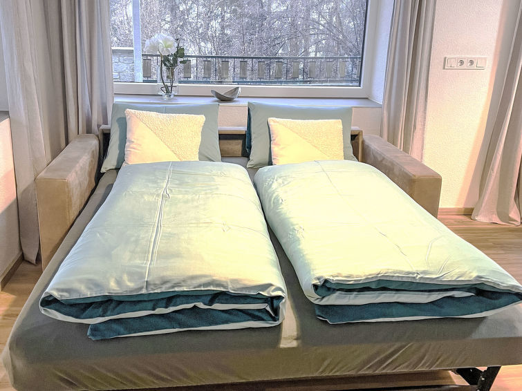 "Marina", appartement 3-kamers 70 m2, souterrain, op het noorden gelegen. Comfortabel en modern ingericht: hal. 1 2-pers. kamer. 1 kamer met 1 2-pers bed (160 cm, lengte 200 cm). Groot woonkeuken (oven, afwasmachine, 4 keramische glas kookplaten, broodrooster, waterkoker, elektrische koffiemachine) met 1 2-pers divanbed, eettafel en Sat-TV (Flatscreen TV). Douche/WC, aparte WC, dubbele wastafels. Vloerverwarming. Parketvloeren. Groot terras, op het westen gelegen. Terrasmeubelen. Zijdelings uitzicht op de bergen. Ter beschikking: Internet (WiFi, gratis). Parkeerplaats (overdekt). Geschikt voor families. Niet rokers woning. Maximaal 1 huisdier/hond toegestaan. Privé ingang.