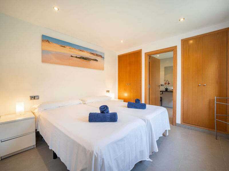 "Amanecer", villa 4-kamers 157 m2 op 2 verdiepingen. Het objekt is geschikt voor 6 volwassenen. Ruim en licht, modern en gezellig ingericht: groot, open woon-/eetkamer met schuifdeur, panoramavenster met eettafel, TV, Sat-TV, Flatscreen TV, air-conditioning en heteluchtverwarming. Uitgang naar de zitplaats in de tuin, naar het zwembad. 1 groot 2-pers. kamer met panoramavenster met 2 bedden (90 cm, lengte 190 cm), bad/WC. 1 groot 2-pers. kamer met panoramavenster met 2 bedden (90 cm, lengte 190 cm). Keuken (oven, afwasmachine, 4 keramische glas kookplaten, magnetron, diepvriezer, elektrische koffiemachine). Uitgang naar de tuin. Bad/douche/WC. Bovenverdieping: 1 groot 2-pers. kamer met schuifdeur, panoramavenster met 1 2-pers bed (180 cm, lengte 200 cm), bad/douche/WC, air-conditioning en heteluchtverwarming. Uitgang naar het terras. Groot terras, zithoek in de tuin, gazon, prieel. Terrasmeubelen, balkonmeubilair, barbecue, ligstoelen, loggia. Beperkt uitzicht op zee en de bergen. Ter beschikking: wasmachine, strijkijzer, haardroger. Internet (WiFi, gratis). ETV/2273 // Reg. Nr.: ESFCTU00000704300005100200000000000000000000ETV/22730