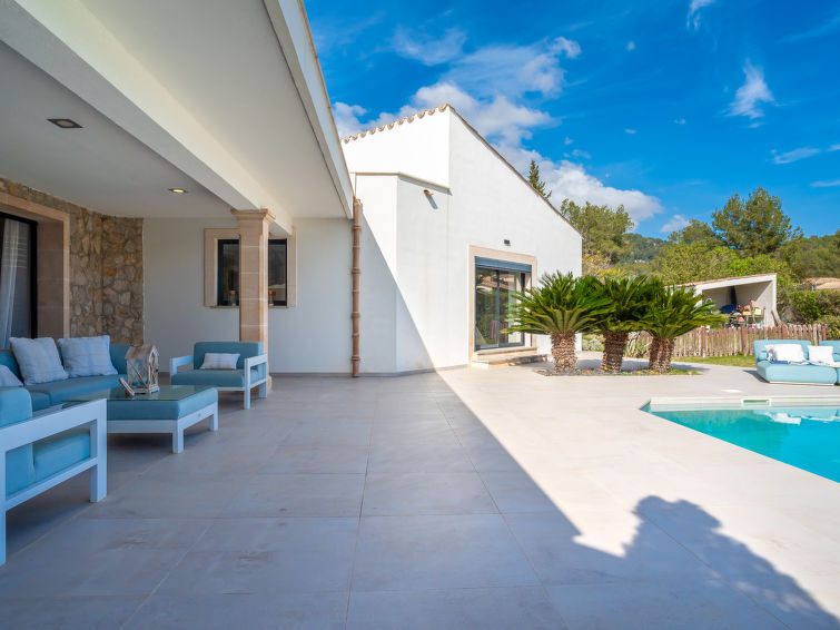 "Ca na Saurina", villa 5-kamers 200 m2 op 2 verdiepingen. Het objekt is geschikt voor 7 volwassenen. Ruim en licht, volledig gerenoveerd, zeer comfortabel en modern ingericht: groot, open woon-/eetkamer met open haard (alleen decoratie), eettafel, Digitale TV, internationale TV-zenders, Flatscreen TV, air-conditioning en heteluchtverwarming. Uitgang naar de zitplaats in de tuin, naar het zwembad. 1 groot 2-pers. kamer met 1 2-pers bed (160 cm, lengte 200 cm), bad/douche/WC, dubbele wastafels, air-conditioning en heteluchtverwarming. Uitgang naar de zitplaats in de tuin. 1 2-pers. kamer met 1 2-pers bed (150 cm, lengte 190 cm), air-conditioning en heteluchtverwarming. Uitgang naar de zitplaats in de tuin. 1 2-pers. kamer met 1 x 2 stapelbedden (90 cm, lengte 190 cm), douche/WC, dubbele wastafels, air-conditioning en heteluchtverwarming. 1 kamer met 1 bed (90 cm, lengte 190 cm), air-conditioning en heteluchtverwarming. Keuken (5-pits kookplaat, oven, afwasmachine, broodrooster, waterkoker, magnetron, diepvriezer, elektrische koffiemachine, kookeiland) met air-conditioning en heteluchtverwarming. Uitgang naar de zitplaats in de tuin. Aparte WC. Bovenverdieping: (wenteltrap) galerij met afgeschuinde daken. Ruime zithoek in de tuin, prieel. Terrasmeubelen, barbecue, ligstoelen (6), loggia. Beperkt uitzicht op de bergen. Ter beschikking: wasmachine, droger, strijkijzer, kinderstoel, kinderbed tot 2 jaar, haardroger. Internet (WiFi, gratis). Parkeerplaats bij het huis. Rookvrij huis. Brandblusser. Het zwembad genoemd in de beschrijving is voor privé gebruik. ETV/10554 // Reg. Nr.: ESFCTU0000070300002093420000000000000000000ETV/105547